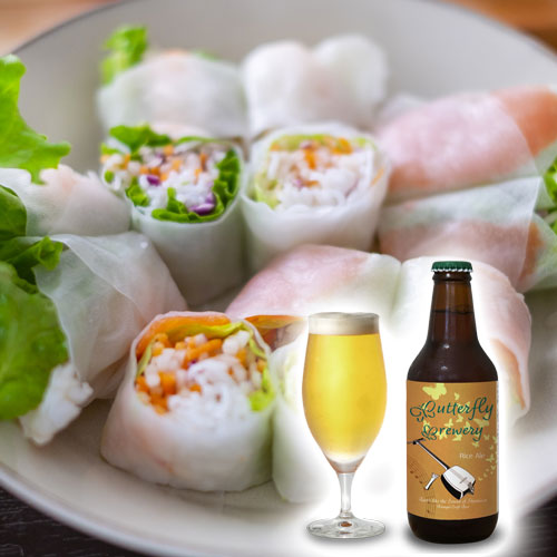 合わせる料理は爽快感と軽やかさを活かすものがお勧めです。 和食ならシンプルに枝豆や冷ややっこと合わせたり、焼き鳥やエビ・野菜などの軽めの揚げ物や、いなり寿司や巻き寿司などお米同志の組み合わせは間違いありません。 また、アジア・エスニック料理の複雑な風味もさっぱりと受け止めてくれるので、生春巻きやガパオライスなどと合わせると、口の中をリフレッシュしてくれます。